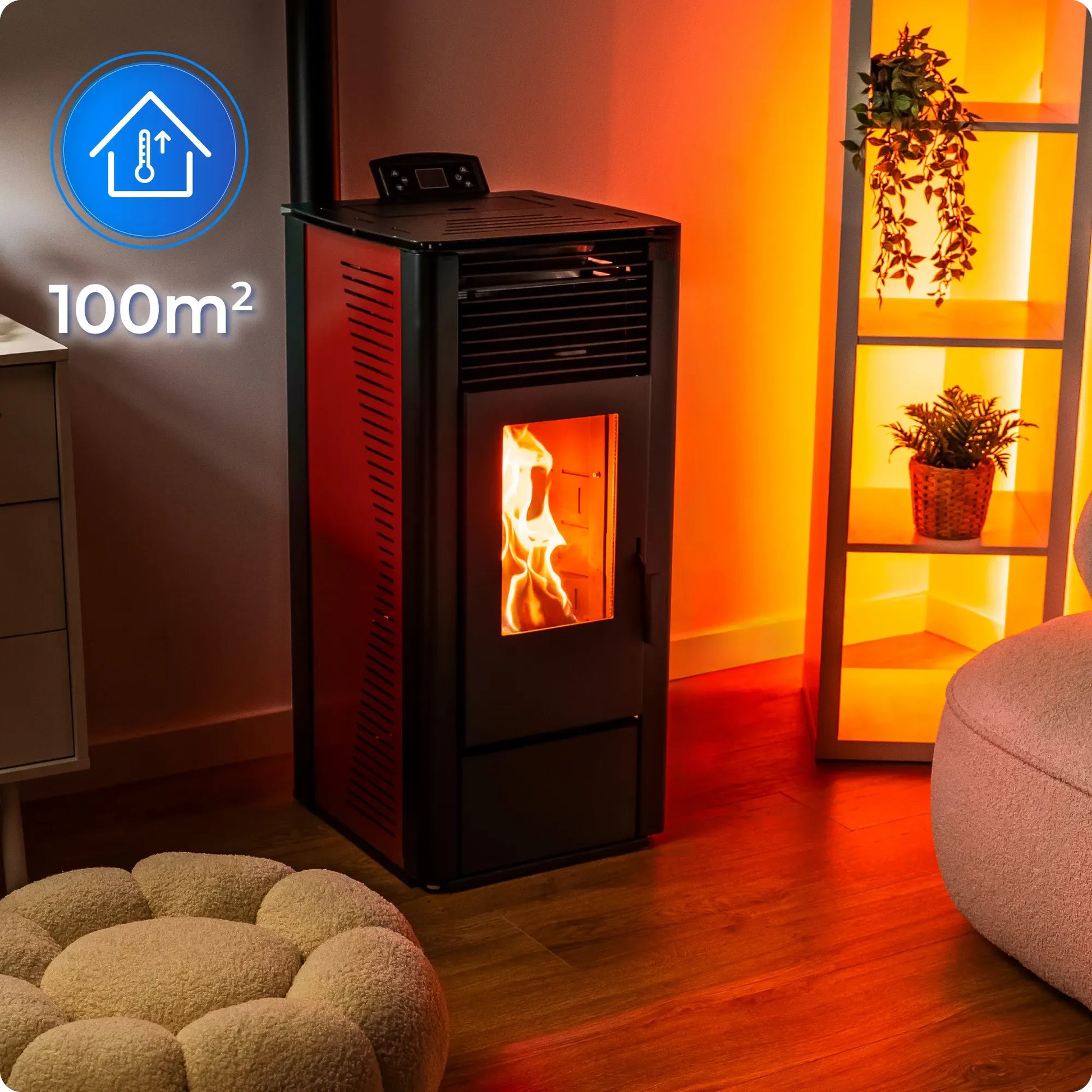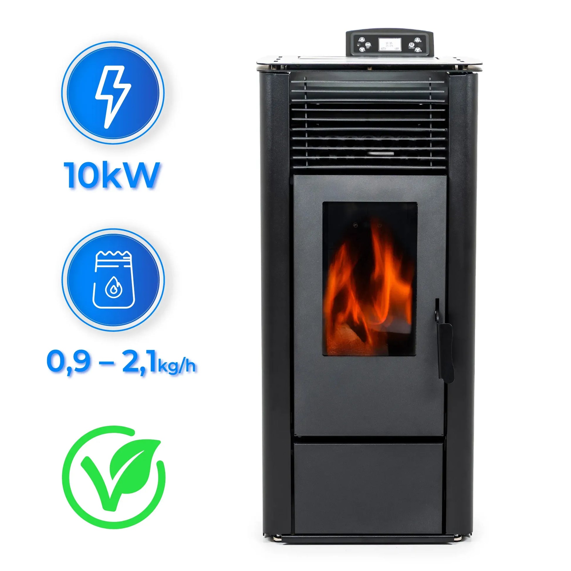 Estufa de pellets independiente 10kW, chimenea de acero, termostato y WiFi